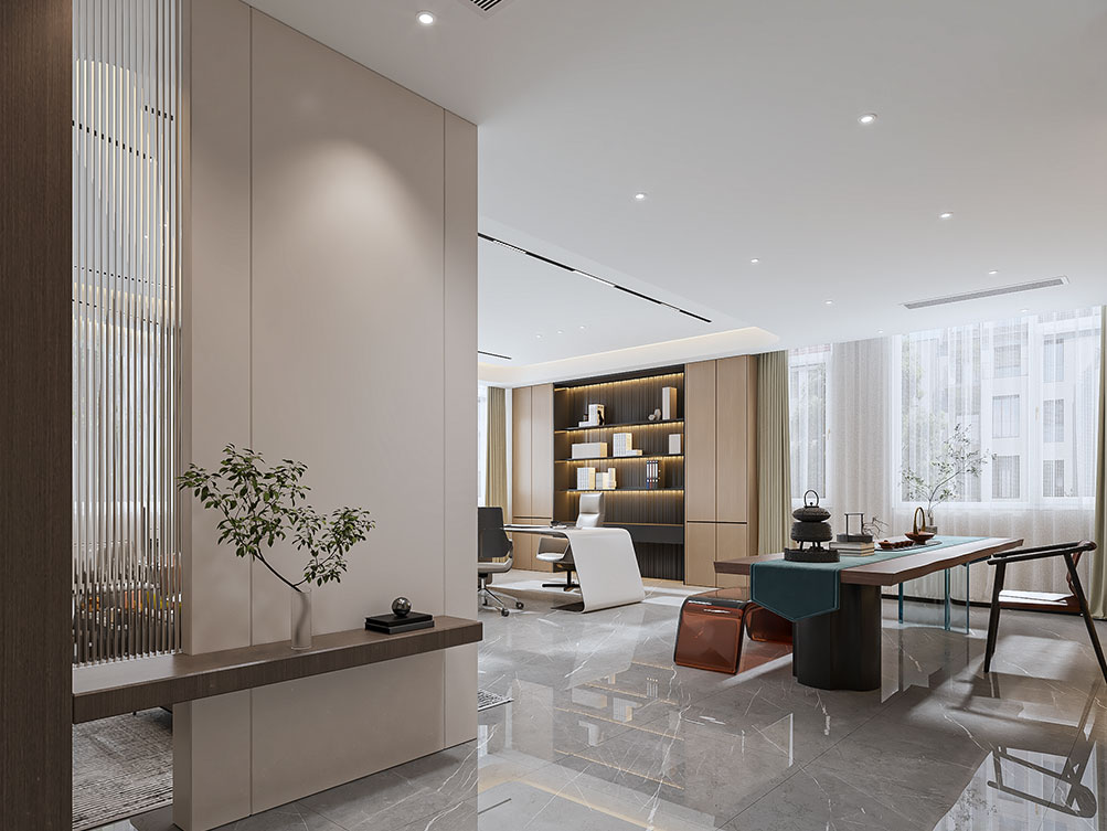 博思達辦公區裝修效果以 “高效協作 + 現代簡約” 為核心,主色調選用淺灰、原木色與白色,營造清爽通透且兼具活力的辦公氛圍。空間布局上,采用開放工位與獨立會議室結合的設計,開放區用低矮隔斷劃分區域,方便員工即時溝通,每張工位配備多功能收納柜與可調節臺燈;獨立會議室按需求分小型洽談室與大型會議空間,均配備高清投影、白板與隔音棉,滿足不同協作場景;同時融入實用細節,茶水間設長條操作臺與儲物柜,墻面點綴簡約裝飾畫與綠植,休閑角擺放舒適沙發與小茶幾,供員工短暫放松;整體空間無冗余設計,既保證辦公效率,又通過原木元素與軟裝搭配傳遞溫馨感,契合現代辦公對功能性與舒適度的雙重需求。