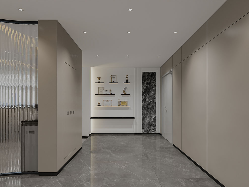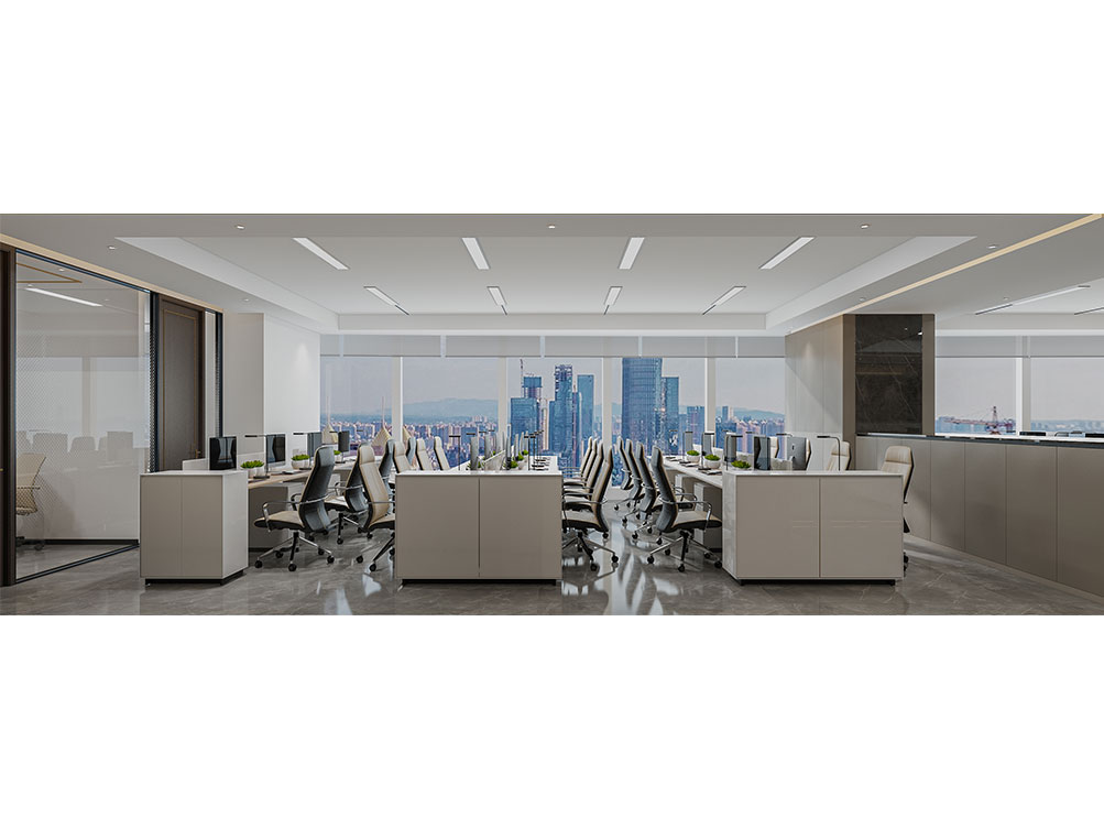 華潤集團辦公區裝修效果以 “大氣穩重 + 多元融合” 為核心,主色調選用深灰、米白搭配原木色與華潤標志性紅色點綴,既彰顯央企的厚重底蘊,又兼具現代辦公的活力。前臺接待區采用大面積啞光石材背景墻,嵌入金屬質感的集團 LOGO,搭配線條利落的深色接待臺與藝術化綠植裝置,傳遞專業且有溫度的第一印象;開放辦公區采用模塊化智能工位設計,配備獨立收納系統與人體工學座椅,墻面穿插集團業務板塊(如能源、零售、健康)的簡約主題掛畫,體現多元產業屬性;會議室按規模配置高清智能會議系統與隔音材質,大型會議室增設遠程視頻設備,滿足跨區域協作需求;同時設置兼具商務與休閑功能的茶水區、展示集團發展歷程的文化墻,以及供員工放松的休閑區,整體空間在保障辦公高效的同時,既凸顯企業品牌調性,又兼顧員工體驗與多元業務場景適配性。